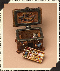 Boyd's Bear item #392138, 2004 Treasure Box, 2E #1379, Nicholas' Holiday Basket with Spruce McNibble. Quote on Bottom: ""God Bless Christmas"" - Charles Dickens. Quote On inside lid: ""May Christmas be evergreen in your heart""."